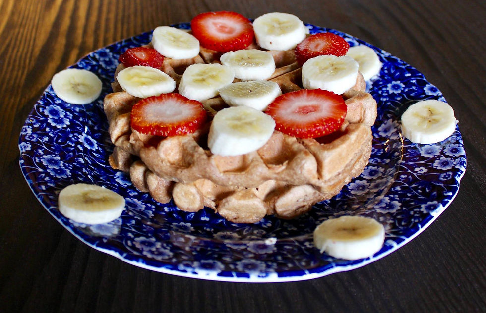 Add all ingredients into blender, starting with the liquids and blend until smooth. Pour into waffle maker and enjoy:)