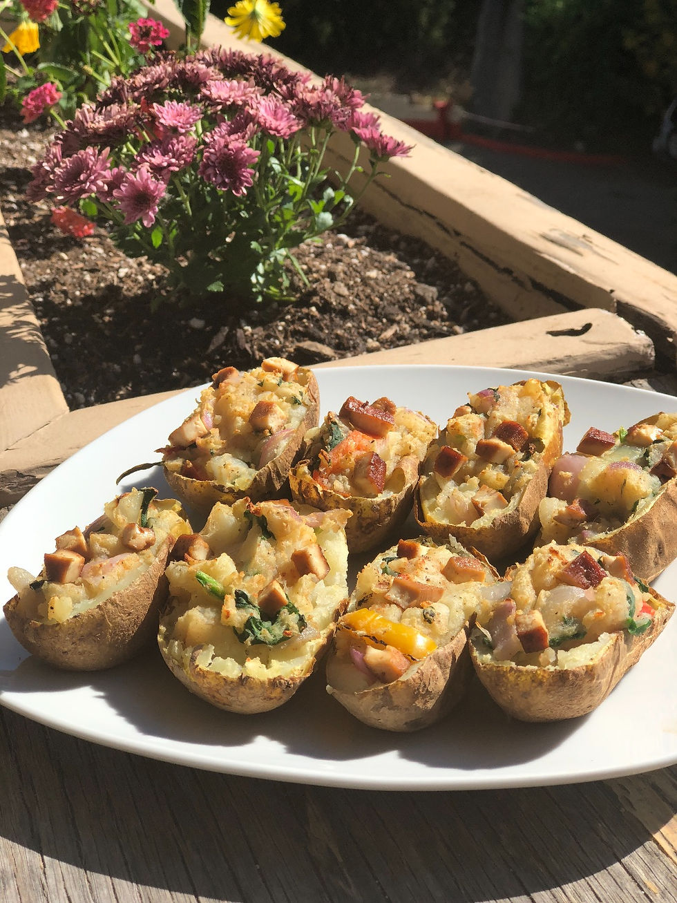 Stuffed Potatoes!! This was a fun way to spice up potatoes. I used to be obsessed with potato skins and this was a healthier version of them. These would be a perfect finger food for a party or just a good dinner to have with the family!